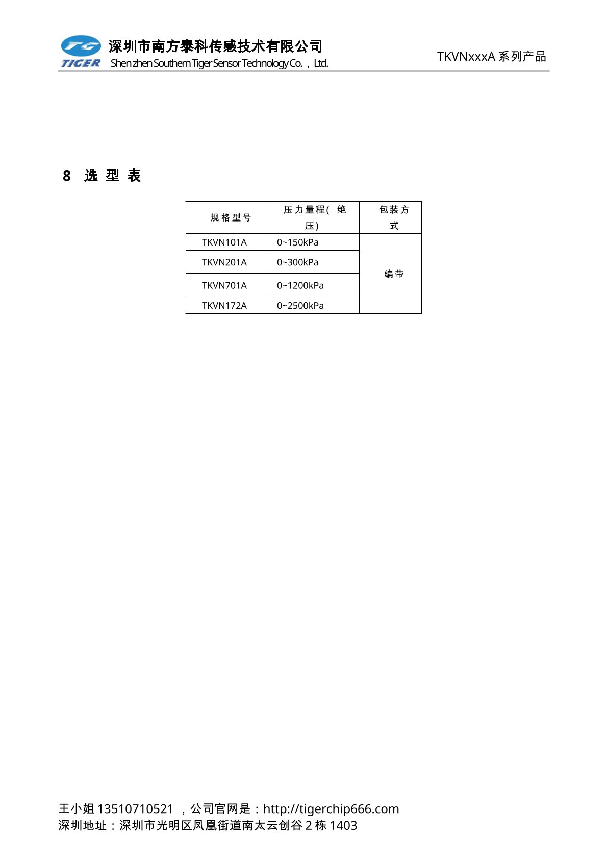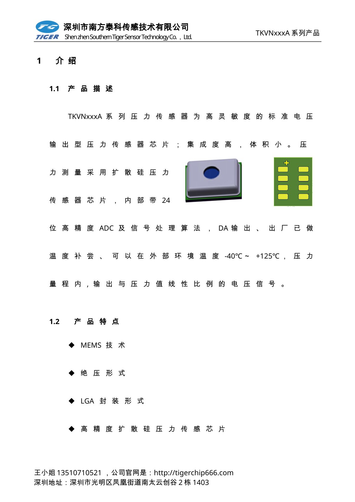 TKVNxxxA系列壓力傳感器為高靈敏度的標準電壓輸出型壓力傳感器芯片