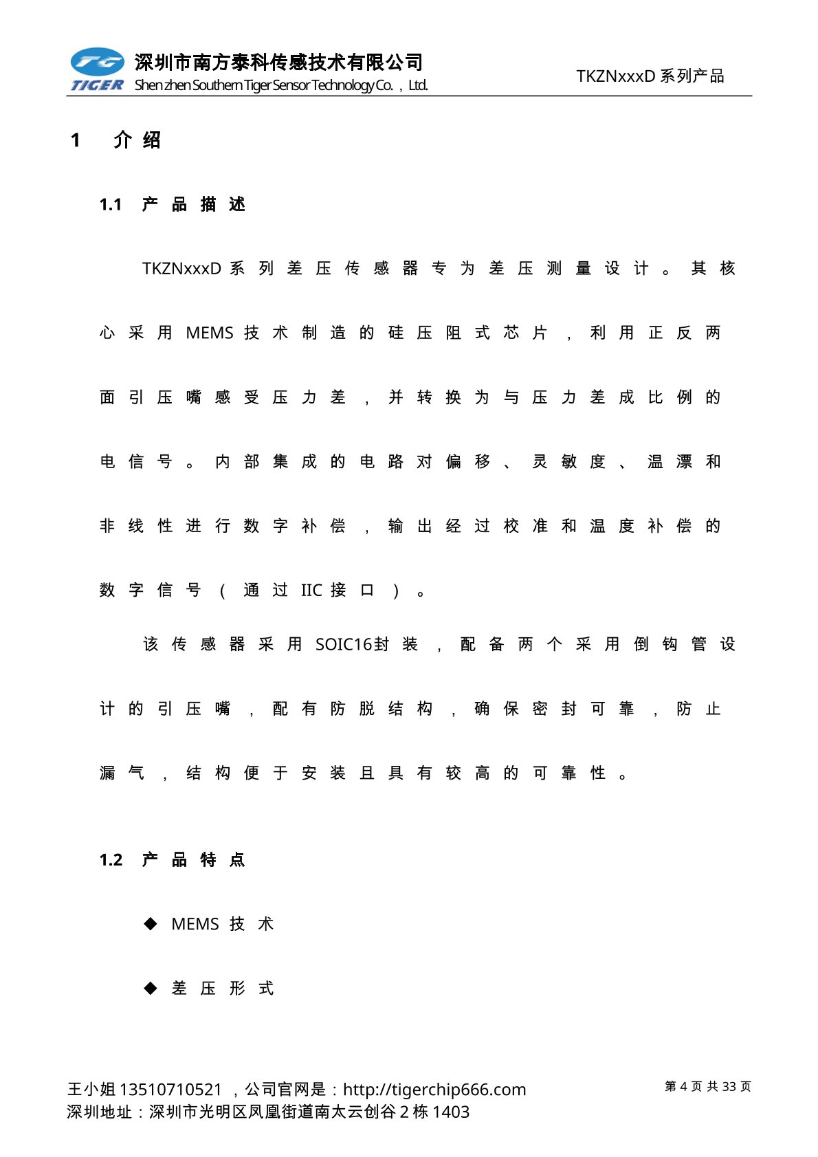 TKZNxxxD系列差壓傳感器專為差壓測(cè)量設(shè)計(jì)。其核心采用MEMS技術(shù)制造的硅壓阻式芯片,利用正反兩面引壓嘴感受壓力差,并轉(zhuǎn)換為與壓力差成比例的電信號(hào)。內(nèi)部集成的電路對(duì)偏移、靈敏度、溫漂和非線性進(jìn)行數(shù)字補(bǔ)償,輸出經(jīng)過校準(zhǔn)和溫度補(bǔ)償?shù)臄?shù)字信號(hào)(通過IIC接口)。